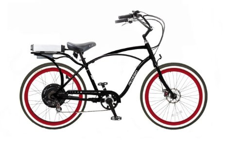 Pedego Comfort Cruiser Classic Black with Red Rims Elegant & Efficient ExplorationAs the name implies, form and function are combined to provide a cool looking electric bike cruiser that is a comfortable alternative to the car or classical bicycle. Ride it to work, run your errands, get some exercise, or just get out there and have a good time. All models blend fashionable retro-cruiser style with high quality electric components to carry you quickly and easily to wherever you want to go. The feeling resultant from a ride on this electric bike cruiser is very analogous to that of a flying dreaming, without any of the scary parts. It's effortless to maneuver and so incredibly smooth.Among its many wonderful characteristics are its ability to make hills no longer a daunting task, and its ability to get you up top drier. This e-bike provides a wonderful experience when a perfect mix between classic pedaling and modern throttle is found. Imagine how much farther you could actually travel if you only had to pedal at say, 60, 70 or 80 percent of the time, as the lightweight lithium battery and the brushless, gearless hub motor can take you 15-30 miles by themselves. Our goal with this model is to not eliminate exercise, to but encourage and necessitate it! We just want to get you out there having a good time, in style.As goes for every one of our electric bikes, this electric bike cruiser is comprised entirely of high quality name brand components, including Shimano SIS Index® Shifters, Dia-Compe Brakes, and Kenda K-RAD Urban Tires. Amongst our many color combinations, you'll never find one to be too abrasive or flashy. We implore you to take a look for yourself - our website is designed to provide you with every piece of information you would need to make an informed decision to buy electric bikes online. Read More...