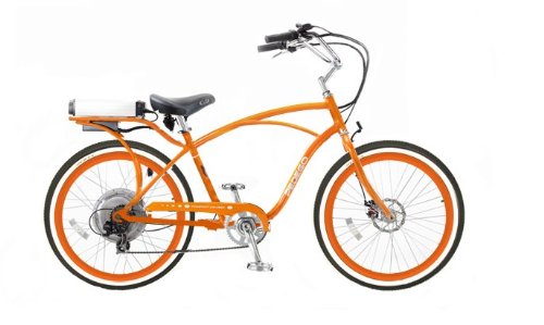 Pedego Orange Comfort Cruiser Classic Electric Bike with Orange Rims Whitewall Tires As the name implies, form and function are combined to provide a cool looking electric bike cruiser that is a comfortable alternative to the car or classical bicycle. Ride it to work, run your errands, get some exercise, or just get out there and have a good time. All models blend fashionable retro-cruiser style with high quality electric components to carry you quickly and easily to wherever you want to go. The feeling resultant from a ride on this electric bike cruiser is very analogous to that of a flying dreaming, without any of the scary parts. It’s effortless to maneuver and so incredibly smooth. Among its many wonderful characteristics are its ability to make hills no longer a daunting task, and its ability to get you up top drier. This e-bike provides a wonderful experience when a perfect mix between classic pedaling and modern throttle is found. Imagine how much farther you could actually travel if you only had to pedal at say, 60, 70 or 80 percent of the time, as the lightweight lithium battery and the brushless gearless hub motor can take you 15-30 miles by themselves Our goal with this model is to not eliminate exercise, to but encourage and necessitate it! We just want to get you out there having a good time, in style. As goes for every one of our electric bikes, this electric bike cruiser is comprised entirely of high quality name brand components, including Shimano SIS Index Shifters, Dia-Compe Brakes, and Kenda K-RAD Urban Tires. Amongst our many color combinations, you’ll never find one to be too abrasive or flashy. We implore you to take a look for yourself - our website is designed to provide you with every piece of information you would need to make an informed decision to buy electric bikes online. Read More...